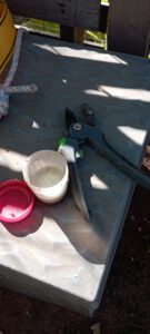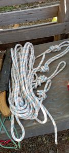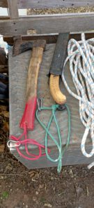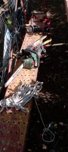 El curso consta de herramientas básicas de mano, tijera de mano, tijeras de poda a dos manos, serrucho, hacha, cuerdas, arnés, y maquinaria a batería ( como somos una asociación amigable con el medioambiente usamos las baterías recargadas con energía solar).
