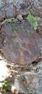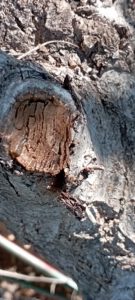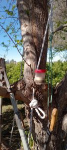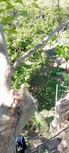 Como se hacen cortes para que la sierra no se enganche, tanto en serrucho como en motosierra, así como la dosificación de cicatrizante en los cortes nuevos así como en los viejos que vemos agrietados. Poda conveniente para el árbol como para la seguridad del individuo dejando posiciones para los años próximos.