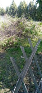Recogida de la poda, limpieza, recorte para aprovechamiento de leña para paellas y para la calefacción. Resto para compostaje.